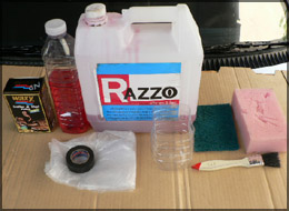 3. แปรงทาสี ขนาดพอเหมาะสัก 1 นิ้ว หรือ 1.5 นิ้ว , ฟองน้ำล้างรถ (ไม่ต้องใช้แพงๆครับ เพราะมันโดนน้ำมันทีเดียวก็อาจเหลวเสียทิ้งได้เลย) หรือสก็อตไบท์ สำหรับท่านที่คิดว่าเครื่องสกปรกมากๆ
