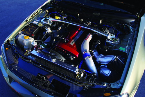 สำหรับเครื่องยนต์ RB26DETT ที่เป็น FINE SPEC จะถูกพัฒนาใหม่ โดย NISMO ใช้พื้นฐานเครื่อง N1 ปรับปรุงให้สมบูรณ์แบบที่สุด มันไม่ได้ทำมาเผื่อแรงม้ามากมายระดับ 1,000 PS ขึ้นไป แต่มันจะเน้นเรื่อง Response หรือการตอบสนองการขับขี่ที่ดีกว่าสแตนดาร์ดอย่างมาก แรงม้าไม่ได้เน้นมาก คงอยู่ในราว ๆ 500-600 PS แต่ต้องขับได้ทนทาน ไม่มีปัญหาเรื่องความร้อน พูดง่าย ๆ คือ “รถแรงที่ไร้ปัญหาจุกจิก” ไส้ในก็ยังเป็นของ N1 ความจุ 2,568 ซี.ซี. เท่าเดิม แต่มีการ “ปรับปรุงเคลียแรนซ์” ใหม่ โดย NISMO จะเป็นผู้กำหนดมาให้ พวกอุปกรณ์เคลื่อนไหวต่าง ๆ จับถ่วงดุลใหม่หมด สำคัญคือ “ปรับ Flow ของระบบของเหลวในเครื่องใหม่หมด” เริ่มตั้งแต่ “ระบบหล่อเย็น” ที่ปรับปรุงทางเดินน้ำใหม่ เพิ่ม Flow มากขึ้น ปั๊มน้ำของรุ่น N1 ก็ไม่เหมือนรุ่นธรรมดา (อันนี้ต้องเห็นเองครับ อธิบายลำบาก) และ “ปั๊มน้ำมันเครื่อง” ที่เป็นจุดอ่อนของ RB26 ในเครื่อง N1 ปั๊มน้ำมันเครื่องจะเปลี่ยนแปลงเรื่องของ “เฟืองขบ” ใหม่ ใหญ่กว่าเดิม และองศาของเฟืองจะสัมผัสกันมากกว่า ทำให้การ “รีดแรงดัน” ดีกว่าปั๊มสแตนดาร์ด ก็จะมีผลเรื่องการหล่อลื่น ทำให้ลดทั้งความร้อนและความฝืด เครื่องยนต์มีภาระน้อยลง แรงม้าก็ขึ้นมาเอง...