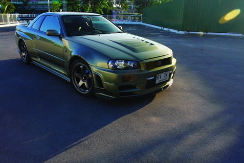 สำหรับ R34 ก็ถือเป็น SKYLINE GT-R รุ่นสุดท้าย ก่อนที่จะเป็น GT-R อย่างเดียว ในรุ่น R35 ซึ่งจะไม่มี SKYLINE GT-R อีกแล้วในสารบบ จึงเป็นรถที่คนเล่นรถสปอร์ตญี่ปุ่นพยายามหามาครอบครอง และราคาก็ใช่ย่อย เพราะมีความนิยมสูง อะไรที่เป็นรุ่น “อำลา” ก็เป็นเช่นนี้แหละ คงหนีไม่พ้นเงื้อมมือของ “พี่อั๋น ATP” ที่จะหามาครอบครอง จากการที่เป็นคนชอบ SKYLINE เป็นทุนเดิมอยู่แล้ว พอมาคันนี้ ซึ่งเป็นตัว “M-Spec Nur” แท้ ๆ ที่เข้ามาวิ่งเล่นในเมืองไทยเมื่อประมาณ 6 ปีก่อน (เจ้าของรถคนแรก เป็นเด็กมัธยม !!!) พอขายต่อ ก็เลยซื้อมาปรับแต่งใหม่เป็นสไตล์ของตัวเอง ที่เน้น “การขับขี่” แบบสมบูรณ์ ไม่ได้เอาแต่แรงม้ามาก ขอพอประมาณ แต่ “ใช้ได้เต็มคันเร่ง” โดยไม่ต้องมีกั๊ก แรงได้ทุกเมื่อ ทน ขับง่าย มั่นใจ นั่นคือสิ่งที่เจ้าของรถต้องการ โดยเฉพาะ “เครื่องยนต์” ที่เป็น NISMO FINE SPEC เป็น Complete Engine ทั้งตัว เท่าที่เห็นในเมืองไทย ก็มีคันนี้คันเดียวเท่านั้นเอง