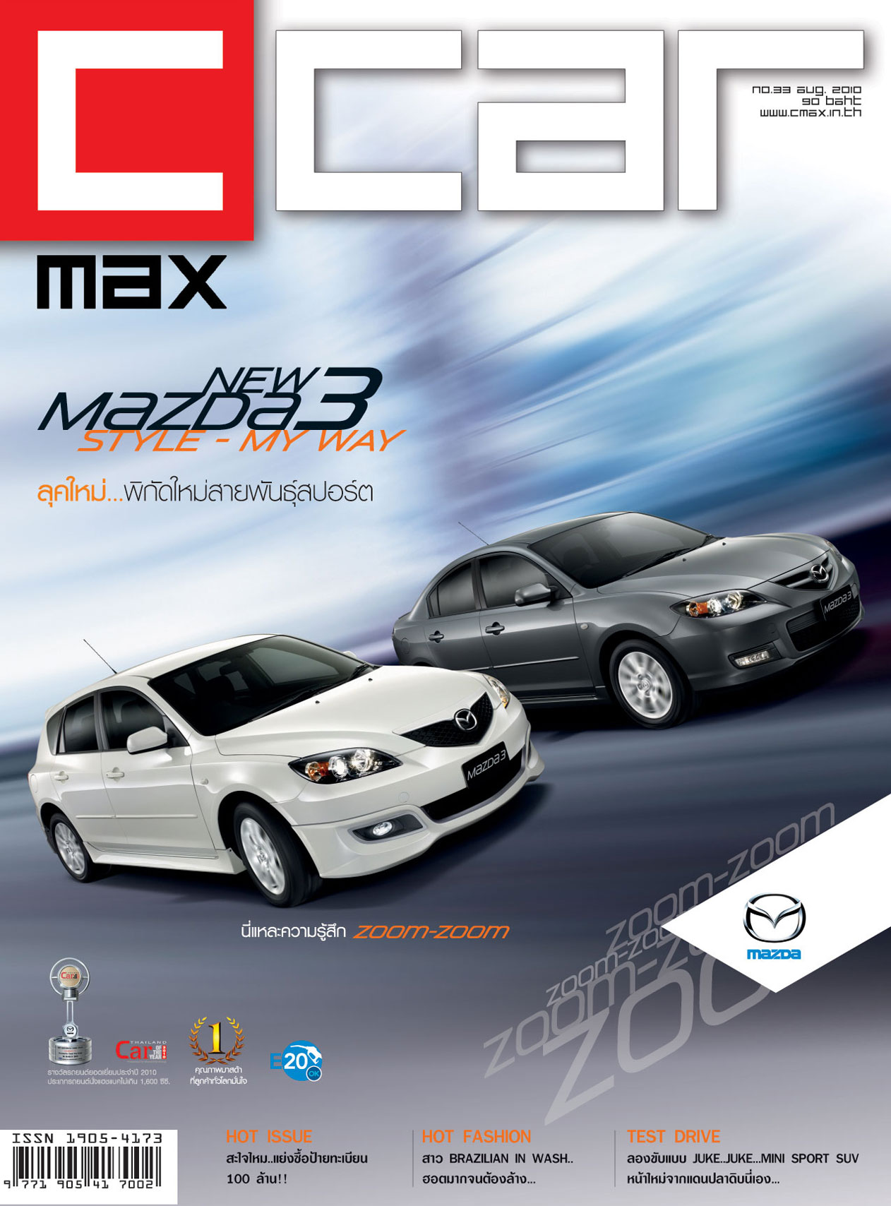 นิตยสารวาไรตี้ในวงการรถยนต์ที่อินเทรนด์ที่สุดในไทยต้องไม่พลาดนิตยสาร C max Car ฉบับเดือนสิงหาคม 2553 ประเดิมหน้าปก.กับรถ NEW MAZDA3 / STYLE – MY WAY สปอร์ตสายพันธุ์ใหม่ของผู้รักความเร็ว และภาพแฟชั่นสุดเซ็กซี่ ร้อนแรงทุกองศา จากนางแบบชาว Brazilian นามว่า “Mariana Radruguz” นิคเนมว่า “Mari” นำมาชมกันเต็มๆ สำหรับ Hot Issue ฉบับเดือนสิงหาคมนี้ ทีมงานคัดสรรเรื่องราวเกี่ยวกับ “การปะมูลป้ายทะเบียน” ท่านมดสนใจจะประมูลไว้เป็นเจ้าของต้องไม่พลาดอ่านฉบับนี้เด็ดขาด ส่วน คอลัมน์ Test Drive มีมาให้ชมกันถึง 3 รุ่น 3 ค่าย อาทิ Nissan Juke จากค่าย TSL, Mitsubishi Triton CNG และ Mercedes Benz – SLK ใครกำลังจะจับจอง 3 คันนี้พลาดไม่ได้อีกเช่นกัน