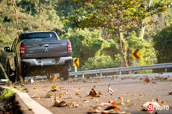 แต่กระนั้น เมื่อใช้เส้นทางมุ่งหน้าสู่ จ.จันทบุรี ที่ผิวถนนถูกซ่อมแซมจนมีลักษณะเป็นคลื่นเกือบตลอดเส้นทาง ตัวรถเริ่มมีอาการกระด้างออกมาให้เห็น ซึ่งแม้ว่าวิศวกรจะพยายามออกแบบไทรทันใหม่ให้นุ่มหนึบยิ่งขึ้น แต่สำหรับสภาพถนนบ้านเราแล้วนั้น มิตซูบิชิอาจต้องทำการบ้านเพิ่มขึ้นอีกนิด เพื่อรองรับการใช้งานแบบครอบครัวที่ต้องการความสบายในการโดยสาร
