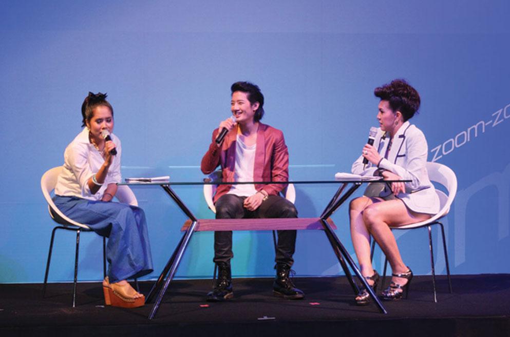 นอกจาก 2 ดาราหนุ่มสุดฮ็อตที่มาร่วมเป็นพรีเซนเตอร์ของมาสด้า2 ในครั้งนี้แล้ว มาสด้ายังเชิญ 2 สาวพิธีกรอารมณ์ดี ท็อป ดารนีนุช โพธิปิติ และอ้น ศรีพรรณ ชื่นสมบูรณ์ มาร่วมสร้างสีสัน และสัมภาษณ์ ณเดชน์ กับ เป้ อารักษ์ อย่างออกรสทุกแง่ทุกมุม พร้อมกับมุมมองเกี่ยวกับวงการรถยนต์ การขับขี่ที่ปลอดภัย รวมถึงการที่มาสด้าเล็งเห็นศักยภาพและบุคลิกของ 2 หนุ่ม ที่มีความแตกต่าง และสามารถตอบโจทย์ของมาสด้า2 ได้อย่างลงตัว นอกจากจะเป็นพรีเซนเตอร์แล้ว ในงานยังจะมีการมอบรถมาสด้า2 ซีดาน ให้แก่หนุ่มณเดชน์ ไปขับโฉบเฉี่ยวอีกด้วยเช่นกัน โดยณเดชน์จะขับมาสด้า2 ซีดาน สีขาว ส่วนเป้ อารักษ์ จะยังคงขับมาสด้า2 แฮตช์แบค สีเขียว