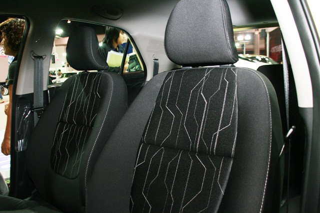 ภายในห้องโดยสาร เน้นการตบแต่งที่มุ่งเน้นความทันสมัย เช่นเดียวความสปอร์ตที่เบาะนั่ง โทนเทาดำถูกใส่เข้ามาในห้องโดยสาร เพิ่มความทันสมัยยิ่งขึ้น ด้วยการออกแบบที่เริ่มจากคอนโซลหน้า ที่ตรงหน้ามีพวงมาลัยแบบ 2ก้านมาพร้อมมาตรวัดเรืองแสง LED สไตล์สปอร์ต ที่นอกจากนี้ยังมีของเล่นต่างที่ใส่มากมาย โดยเฉพาะใครที่รักเกียร์ธรรมดาอาจจะถูกใจกับไฟตำแหน่งการเปลี่ยนเกียร์ หรือ shift light ที่นอกจากนี้ก็มีสิ่งละอันพันน้อย ตั้งแต่ปลั๊กไฟ 12 โวลต์ ถามเก็บของใต้เบาะ และเบาะหลังพับได้ที่น่าสนใจไม่น้อยเลยทีเดียว