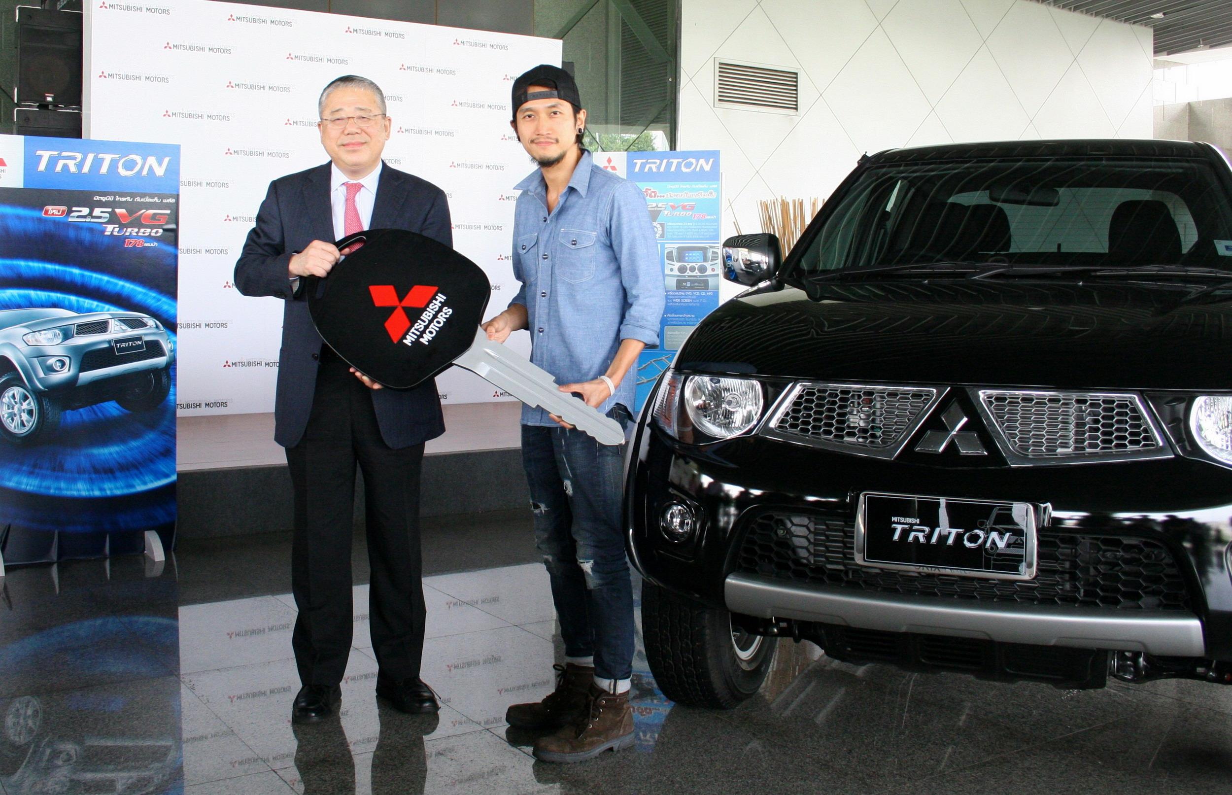 มร. โนบุยูกิ มูราฮาชิ กรรมการผู้จัดการใหญ่ บริษัท มิตซูบิชิ มอเตอร์ส (ประเทศไทย) จำกัด ส่งมอบรถยนต์ มิตซูบิชิ ไทรทัน พลัส 2.5 วีจี เทอร์โบ ให้กับ "อาทิวราห์ คงมาลัย หรือ ตูน- บอดี้สแลม" นักร้องชั้นนำของเมืองไทย และตัวแทนคนรุ่นใหม่ซึ่งจะมาช่วยร่วมถ่ายทอดความแข็งแกร่งและทรงพลังของตัวรถในฐานะพรีเซ็นเตอร์คนล่าสุด เพื่อนำไปใช้งานระหว่างการเป็นพรีเซ็นเตอร์ของรถรุ่นดังกล่าว ณ สำนักงานใหญ่ รังสิต เมื่อเร็วๆ นี้