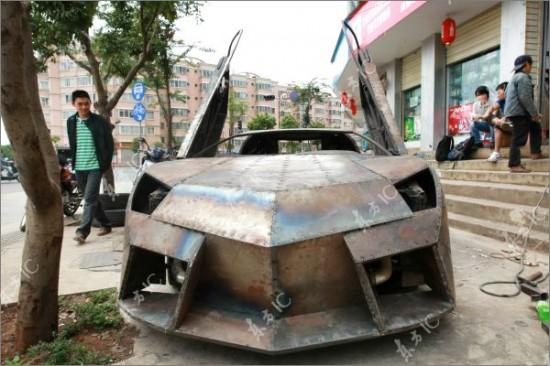 เงินอาจจะไม่เยอะ แต่มันสมองระดับเทพนี้ ทำให้หนุ่มจีนคนนี้เริ่มโปรเจ็ต ในการแปลง a31 ไปเป็น Lamborghini ซึ่ง Asan ช่างทำผมจากคุนหมิง เริ่มทำงานของเขาในการเปลือยร่างก่อนเสริมแผ่นเหล็กตามจุดต่างๆ ออกแบบให้มันเป็น Reventon ในแบบที่เขาชอบ ทั้งตัวถัง ฝากระโปร ทั้งหมดถูกจัดวางไว้อย่างลงตัว มีสิ่งเดียวที่ได้ตบแต่งนั่นคือเครื่องยนต์ดั้งเดิม RB25 ที่ยังใช้การได้