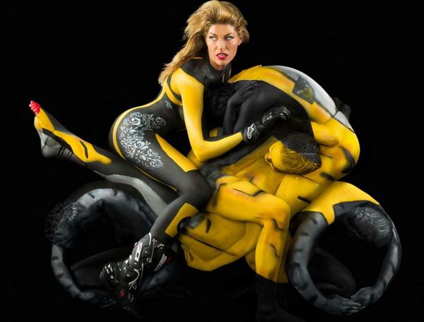 ผลงานชิ้นนี้เป็นการสร้างรถมอเตอร์ไซค์มนุษย์ ขึ้น โดยอาศัยศิลปะจากการบอดี้เพนท์ โดยภาพ 3 ภาพ ที่ใช้เวลาแต่ละครั้งไม่ต่ำกว่า 18 ชั่วโมงในการทำงานและใช้เวลา 5-6 นาที ในการประกอบร่างเป็นมอเตอร์ไซค์ และถ่ายภาพให้เป็นงานศิลปะชั้นเลิศ