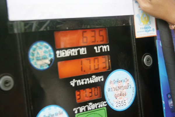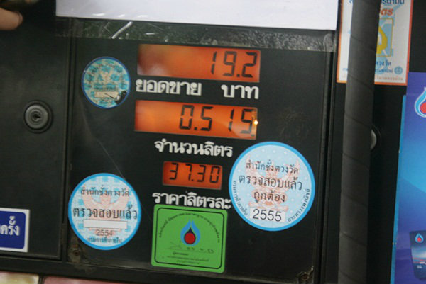 ในที่สุดหลังจากเวลาเกือบๆ 2 ชั่วโมงเราก็มาถึง ที่ปั้มน้ำมันปลายทาง ที่ศรีราชาแถมมาเป็นคันแรกด้วย จนโดนติติงว่านี่ขับจะเร็วไปไหน แต่แล้วเมื่อเด็กปั้มเสียบหัวจ่ายเติมวัดอัตราประหยัดที่ใช้งานจริงขับจริง .....ตึ้ก!! หัวจ่ายตัดในระยะเวลาเพียงไม่ถึงนาที ทำให้ทุกคนรวมทั้งเรางงไปด้วย หลังจากนั้นก็ค่อยๆริน ด้วยความที่น้ำมันยังล้นถึงคอถัง ครั้งแรกนี้ได้ 1.703 ลิตรเท่านั้น