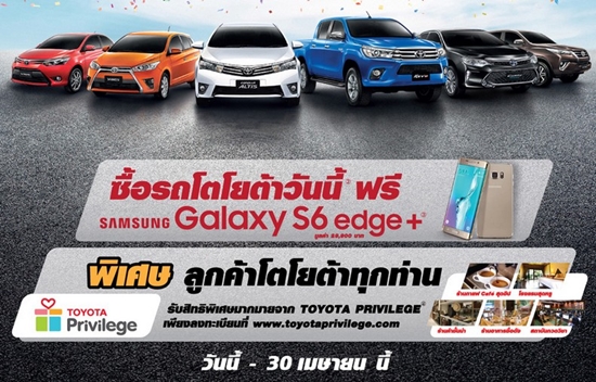 รับ Samsung GALAXY S6 edge+ เมื่อจองและรับรถยนต์โตโยต้า