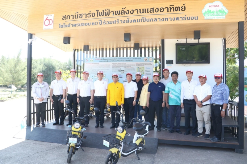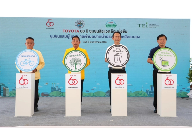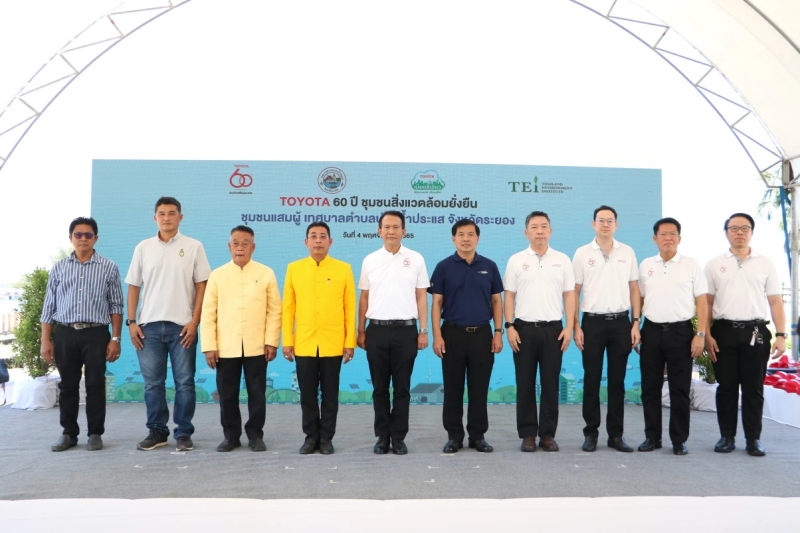 นายไตรภพ วงศ์ไตรรัตน์ ผู้ว่าราชการจังหวัดระยอง พร้อมด้วย นายสุรภูมิ อุดมวงศ์ รองกรรมการผู้จัดการใหญ่ บริษัท โตโยต้า มอเตอร์ ประเทศไทย จำกัด นายไชยรัตน์ เอื้อตระกูล นายกเทศมนตรีเทศบาลตำบลปากน้ำประแส และ ดร.วิจารย์ สิมาฉายา ผู้อำนวยการสถาบันสิ่งแวดล้อมไทย ร่วมเปิดโครงการ โตโยต้า 60 ปี 60 ชุมชนสิ่งแวดล้อมยั่งยืน พร้อมแนะนำชุมชนแสมผู้ เทศบาลตำบลปากน้ำประแส จังหวัดระยอง เป็นชุมชนต้นแบบแห่งแรก ในการส่งมอบองค์ความรู้แก่ชุมชนอื่นๆ เพื่อมุ่งสู่เป้าหมายในการสร้างสังคมแห่งความเป็นกลางทางคาร์บอนทั่วประเทศ ณ อนุสรณ์เรือรบประแส ตำบลปากน้ำประแส อำเภอแกลง จังหวัดระยอง เมื่อวันที่ 4 พฤศจิกายน 2565 ที่ผ่านมา