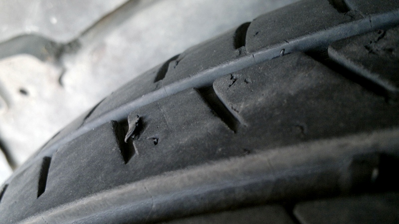 - ถ้าเนื้อยางหลุดออกไป "กว้าง" หรือ "ลึกจนเห็นโครงสร้างภายใน" (เห็นเส้นใยสีขาว หรือเส้นลวด)