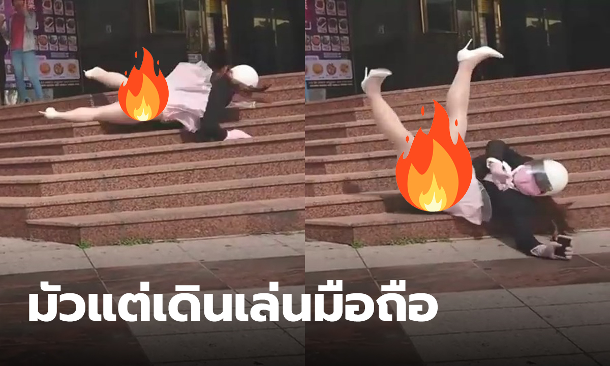 คลิปอุทาหรณ์ สาวกระโปรงเหี่ยน เดินเล่นมือถือไม่มองทาง ตกบันได หวอออกอายสุดๆ
