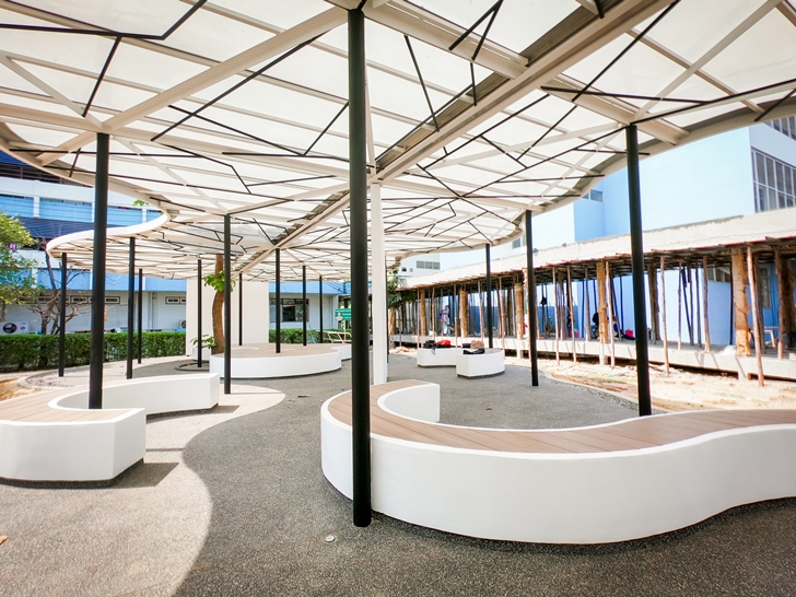 “โดยจุดเริ่มต้นการสร้างสรรค์ผลงานมาจากรายวิชาออกแบบ (Design) นักศึกษาทุกคนจะได้รับ Assignment เพิ่มโอกาสให้นักศึกษาได้มีส่วนร่วมในการพัฒนา ในโจทย์การแก้ Pain point เพิ่มสัดส่วน พื้นที่พักคอย รองรับสำหรับญาติผู้ป่วยในโรงพยาบาลพระยุพราชสระแก้ว แต่ยังคงบริบทความร่มรื่นเน้นธรรมชาติ โดยเบื้องต้นทางคณะฯ ได้พานักศึกษาลงสำรวจพื้นที่จริง เพื่อเก็บรายละเอียด วิเคราะห์จุดแข็งที่นำไปต่อยอดได้ และจุดอ่อนที่ควรพัฒนา เพื่อเป็นฐานข้อมูลเพิ่มศักยภาพในการออกแบบมากขึ้น ด้วยบริบทการออกแบบที่คำนึงถึงวิถีชีวิต เป็นศูนย์กลางในการออกแบบ ท่ามกลางสภาพแวดล้อมบนพื้นที่สีเขียว มีต้นไม้ บรรยากาศความร่มรื่น”
