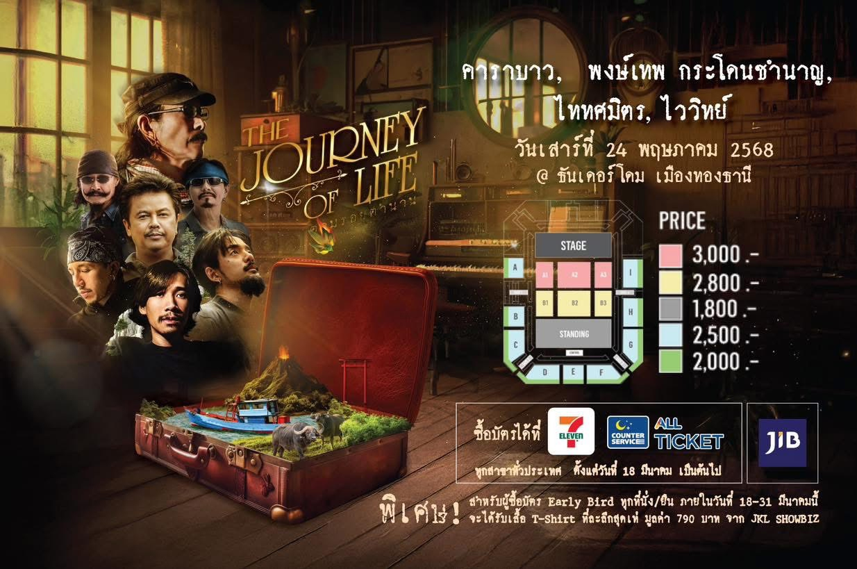 พิเศษสุด สำหรับผู้ซื้อบัตร Early Bird ทุกที่นั่ง/ยืน ตั้งแต่วันที่ 18-31 มี.ค.นี้ จะได้รับเสื้อ T-Shirt ที่ระลึกสุดเท่ มูลค่า 790 บาทฟรี จาก JKL Showbiz โดยติดตามความเคลื่อนไหวได้ทางเพจ The Journey of Life