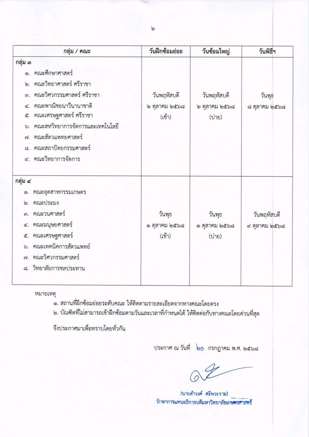 กลุ่ม 2 ซ้อมย่อย 3 ตุลาคม 2568 (เช้า) / ซ้อมใหญ่ 3 ตุลาคม 2568 (บ่าย) / วันพิธี 7 ตุลาคม 2568
