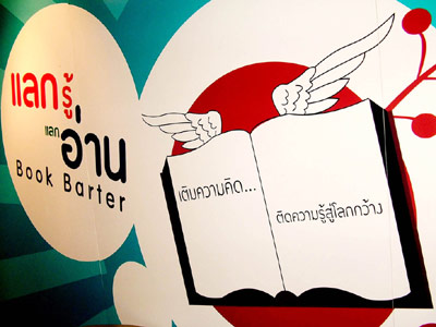 จัดให้มี โครงการ Book Barter แลกรู้แลกอ่าน โดยผู้ที่สนใจเข้าร่วมโครงการฯ จะต้องนำหนังสือของตนเองที่ต้องการจะแลกเปลี่ยนมาลงทะเบียนพร้อมเขียนการ์ด แนะนำให้รู้ แนะนำให้อ่าน ให้กับผู้ที่สนใจแลกเปลี่ยนหนังสือดังกล่าว ขณะเดียวกันเมื่อผู้ที่สนใจเลือกหนังสือที่ต้องการแลกได้แล้วก็ต้องนำหนังสือเล่มที่เลือกมาลงทะเบียนพร้อมเขียนการ์ด ขอบคุณที่ได้รู้ ขอบคุณ ที่ได้แลก เพื่อให้เหตุผลหรือบอกเล่าความรู้สึกและเรื่องดีๆ ที่คาดว่าจะได้จากหนังสือเล่มนี้