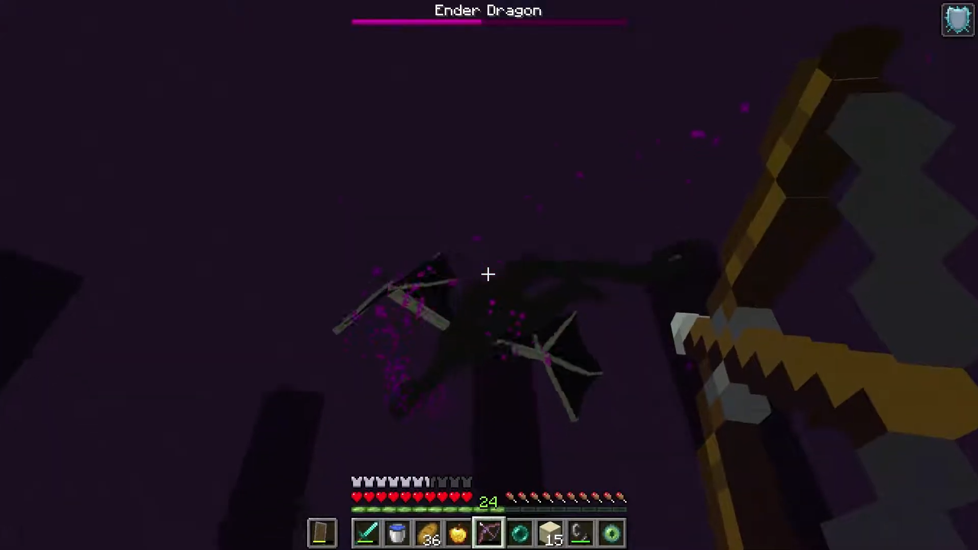 เมื่อเข้าถึงตัวบอสใหญ่ Ender Dragon ได้เขาก็ต้องใช้อาหาร อุปกรณ์เท่าที่พอหามาตลอดทางได้ ในการสู้กับมันอีก ซึ่งไม่ใช่เรื่องง่ายเลย