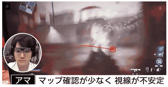 ล่าสุด องค์กรที่มีชื่อว่า Nikkei จากประเทศญี่ปุ่น ได้โพสต์การทดลองจับมุมมองและการเคลื่อนไหวของตามนุษย์ โดยจับข้อมูลนี้ของผู้เล่นระดับ Professional แล้วนำไปเทียบกับผู้เล่นระดับทั่วไป ขณะที่เล่นเกม Call of Duty: Modern Warfare โดยทั้งของคนได้ใส่แว่นพิเศษที่มีการตรวจจับระบบอินฟาเรต และกล้องจับความเคลื่อนไหว