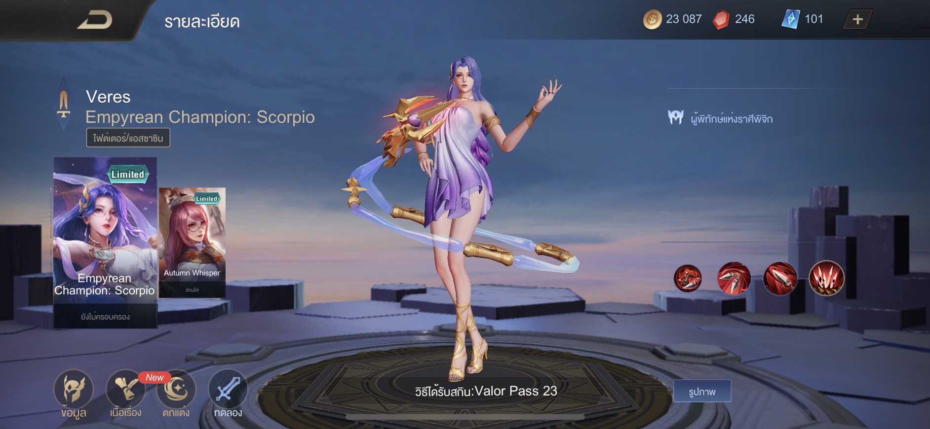 - ของรางวัลเลเวล 1 : สกิน Empyrean Champion : Scorpio (Veres)