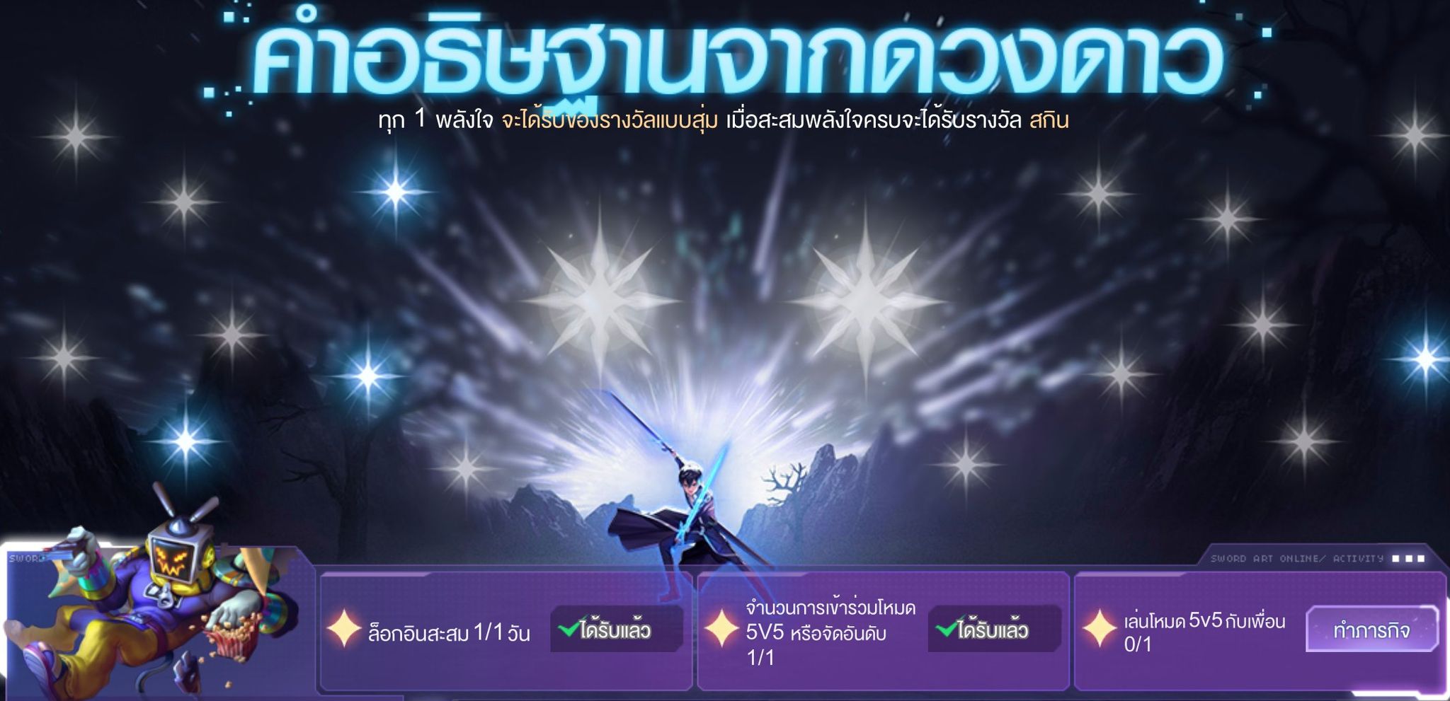 - เข้าร่วม Mode 5 vs 5 หรือโหมดจัดอันดับ 1 ครั้ง ( รับ 1 แต้ม )