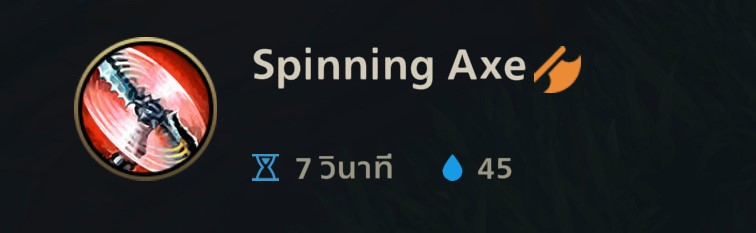 - ต้องพยายามใช้สกิลนี้ให้ต่อเนื่องครับหรือโดยการรับขวานที่กระเด็น
