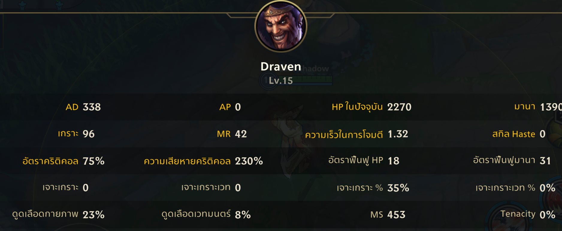 - เมื่อ Draven ตายจะสูญเสียที่สะสมไว้ครึ่งหนึ่ง