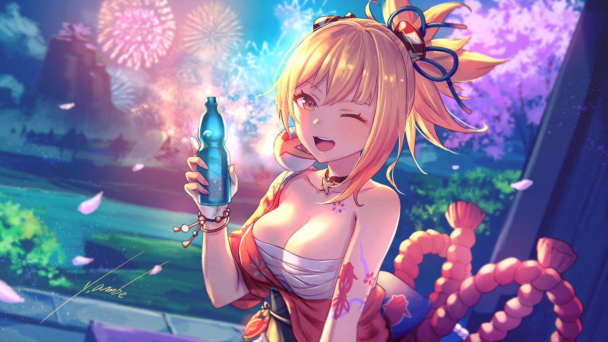 นางเอกแห่ง Inazuma ที่เทใจให้กับ Traveller แบบเต็มประตู ในตัวเกมถือว่าทรวดทรงของเธอ หลบซ่อนอยู่ภายใต้เสื้อเกราะเหล็กแบบนักรบตรงส่วนหน้าอก (เสื้อเกราะกระเด้งได้) ก็ถือว่าเธอยังเป็นสาว Cup B อยู่