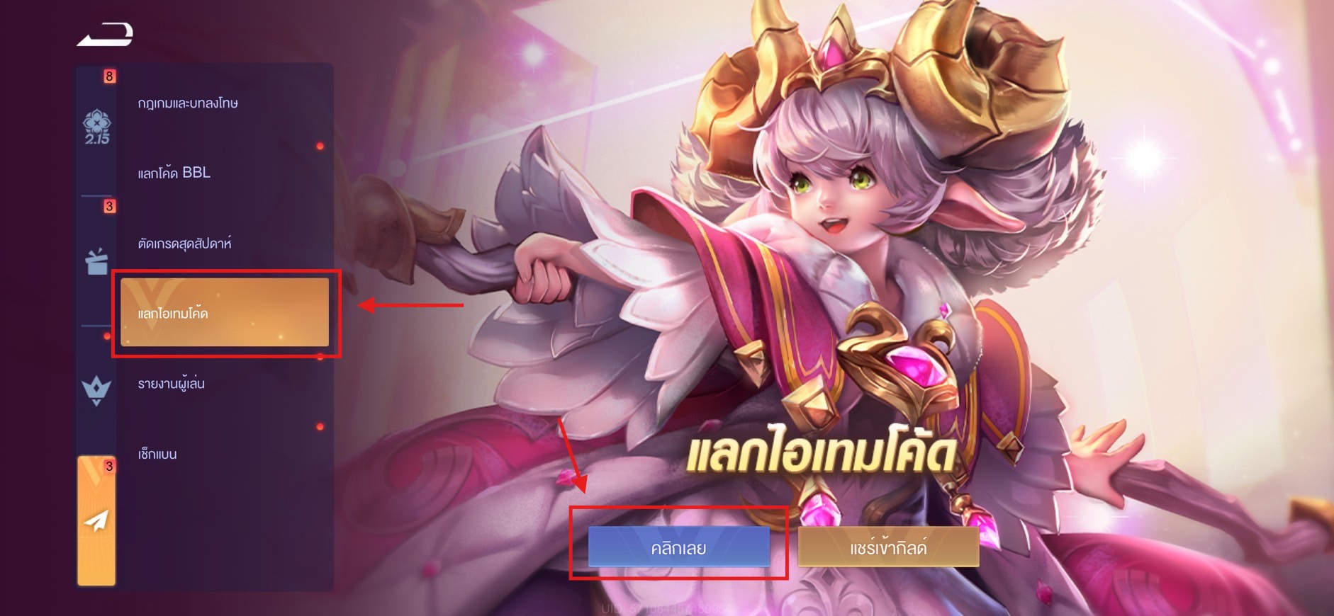 2. มองหาเมนู "แลกไอเทม" หรือ "เติมโค้ด"