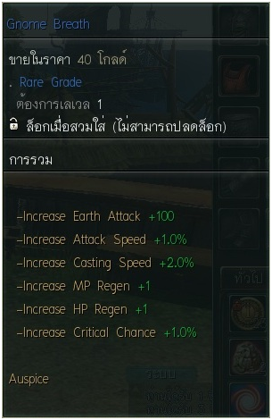 Auspice: Gnome Breath (ไม่ล็อก)Auspice ที่สามารถรวมเป็น Noas Crown ได้ ![]() |