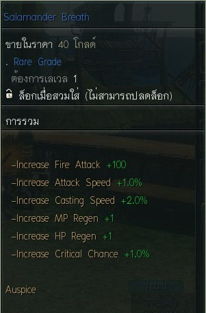 Auspice: Salamander Breath (ไม่ล็อก)Auspice ที่สามารถรวมเป็น Ifrit Crown ได้ ![]() |