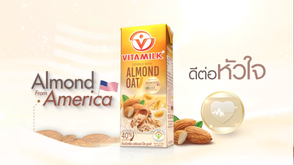 อัลมอนด์เป็น 1 ใน Super Food ที่ดีต่อสุขภาพ เพราะช่วยเพิ่มระดับ HDL หรือไขมันชนิดดี และช่วยลดระดับ LDL หรือไขมันชนิดเลว ซึ่งกรดไขมันเหล่านี้จะมีส่วนช่วยป้องกันการเกิดโรคหัวใจและช่วยลดระดับคอเลสเตอรอลในร่างกายได้ มีงานวิจัยหลายชิ้นบอกว่า หากรับประทานอัลมอนด์วันละ 2 หยิบมือ จะช่วยลด LDL ได้ถึง 9.4% ฉะนั้นอัลมอนด์จึงดีต่อหัวใจ โดยเฉพาะใน น้ำนมถั่วเหลืองไวตามิ้ลค์อัลมอนด์โอ๊ต ที่ใช้อัลมอนด์นำเข้าจากประเทศสหรัฐอเมริกา คัดมาแล้วว่าคุณภาพดีจริงๆ แถมเขายังใช้น้ำตาลลดลง 40% ยิ่งดื่มจึงยิ่งดีต่อหัวใจแบบคูณสอง