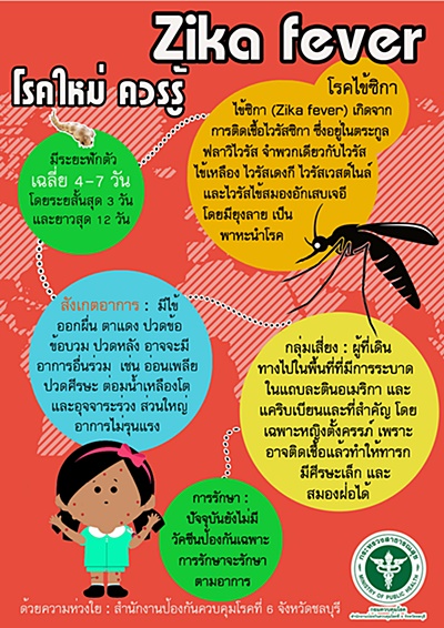 4. กลุ่มเสี่ยง ได้แก่ ผู้ที่เดินทางไปในพื้นที่ที่มีการระบาดอย่างกว้างขวาง เช่น ทวีปอเมริกา และทวีปแอฟริกาตะวันตก โดยเฉพาะหญิงตั้งครรภ์ เพราะอาจติดเชื้อแล้วทำให้ทารกมีศีรษะเล็ก และสมองฝ่อได้ ส่วนในประเทศไทยพบผู้ป่วยยืนยันตั้งแต่ปี พ.ศ. 2555 โดยเฉลี่ยปีละประมาณ 5 ราย ซึ่งไม่ถือว่าสูงผิดปกติ อัตราป่วยใกล้เคียงกับประเทศอื่นๆ ในภูมิภาคอาเซียน อย่างไรก็ตามประเทศไทยมีระบบเฝ้าระวัง โรคนี้แล้ว ตั้งแต่ปี 2556