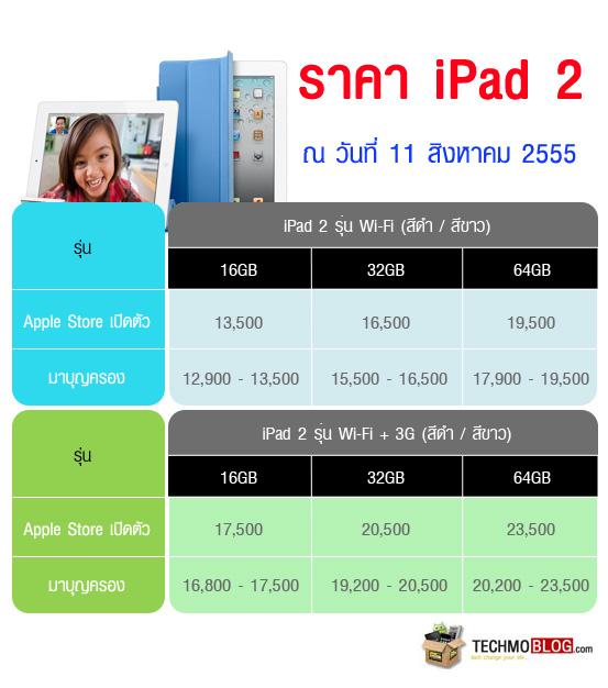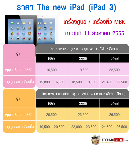 ราคา new iPad (iPad 3) และ ราคา iPad 2 ในไทย วันที่ 11 สิงหาคม 2555 : ราคา new iPad (iPad 3) เครื่องหิ้ว เครื่องศูนย์ มาบุญครอง new iPad (iPad 3) เครื่องศูนย์ iPad 2 3G (ไอแพด 2 Wifi+3G) [บทความ]