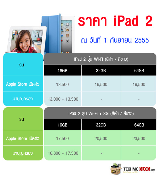 อัพเดทราคา iPad 2 ราคา The new iPad (ราคา iPad 3) ในไทย ณ วันที่ 1 กันยายน 2555