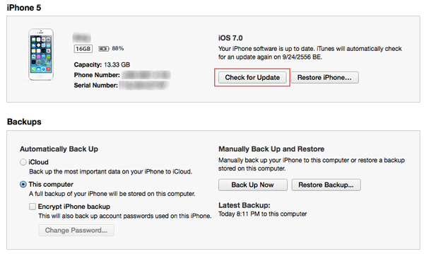 และเมื่อทำการ back up เสร็จเรียบร้อยแล้ว เราสามารถอัพเดท iDevice เป็น iOS 7 ได้ ผ่านทาง iTunes โดยคลิ๊กที่ Check for Update ตัวเครื่องก็ทำการ อัพเดท ให้ทันที หรืออัพเดทแบบ OTA ผ่าน iDevice ด้วยการเข้าไปที่ Settings > General > Software Update จากนั้นเลือก Download and Install ครับ