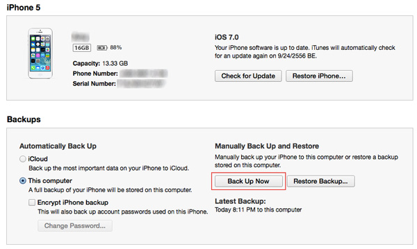 สำหรับการ back up นั้น จะมีให้เลือก 2 แบบด้วยกัน นั่นก็คือ backup ลง iCloud หรือ back up ลงคอมพิวเตอร์เครื่องที่ใช้อยู่ จากนั้น ให้กดที่ปุ่ม Back Up Now เพียงแค่นี้ เวลาอัพเดทเป็น iOS 7 ก็ไม่ต้องกลัวว่า ข้อมูลเก่าจะหายไปแล้วล่ะครับ