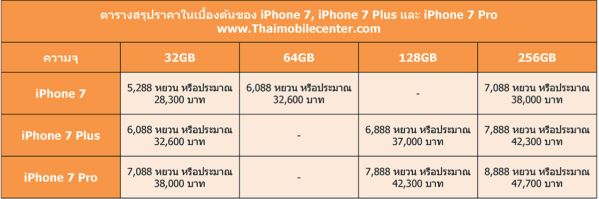 iPhone 7 และ iPhone 7 Plus ว่าที่เรือธงใหม่ล่าสุด หลุดราคาเปิดตัวทุกรุ่น ทุกความจุ iPhone 7 เริ่มต้นที่ 27,400 บาท ส่วน iPhone 7 Plus เริ่มต้นที่ 31,500 บาท!