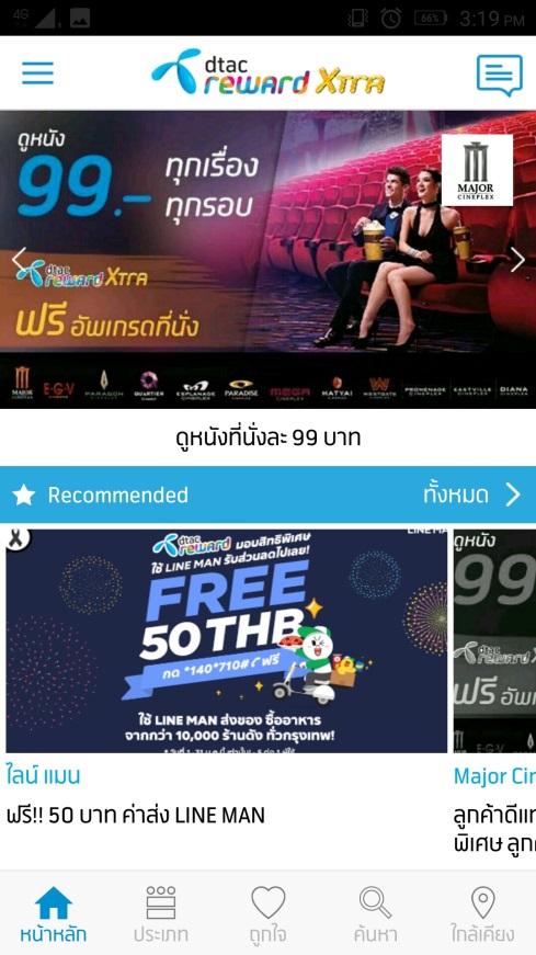 และฟังก์ชันที่น่าจะถูกใจใครหลายคน นั่นก็คือฟังก์ชันยอดฮิตอย่าง dtac Reward ที่รวบรวมเอาโปรโมชั่นและสิทธิพิเศษของดีแทคทั่วฟ้าเมืองไทยเข้ามารวมไว้ในที่เดียว ไม่ว่าจะเป็นส่วนลดและโปรโมชั่นร้านอาหาร ท่องเที่ยว ไลฟ์สไตล์และความงามที่มีทั้งโปรโมชั่นชมภาพยนตร์ในโรง บริการทำความสะอาด และช้อปปิ้งออนไลน์ แถมยังสามารถเลือกจัดโปรโมชั่นต่างๆ ในลิสต์ Favorite หรือค้นหาสิทธิ์ dtac Reward ที่อยู่ใกล้เคียงได้ด้วย