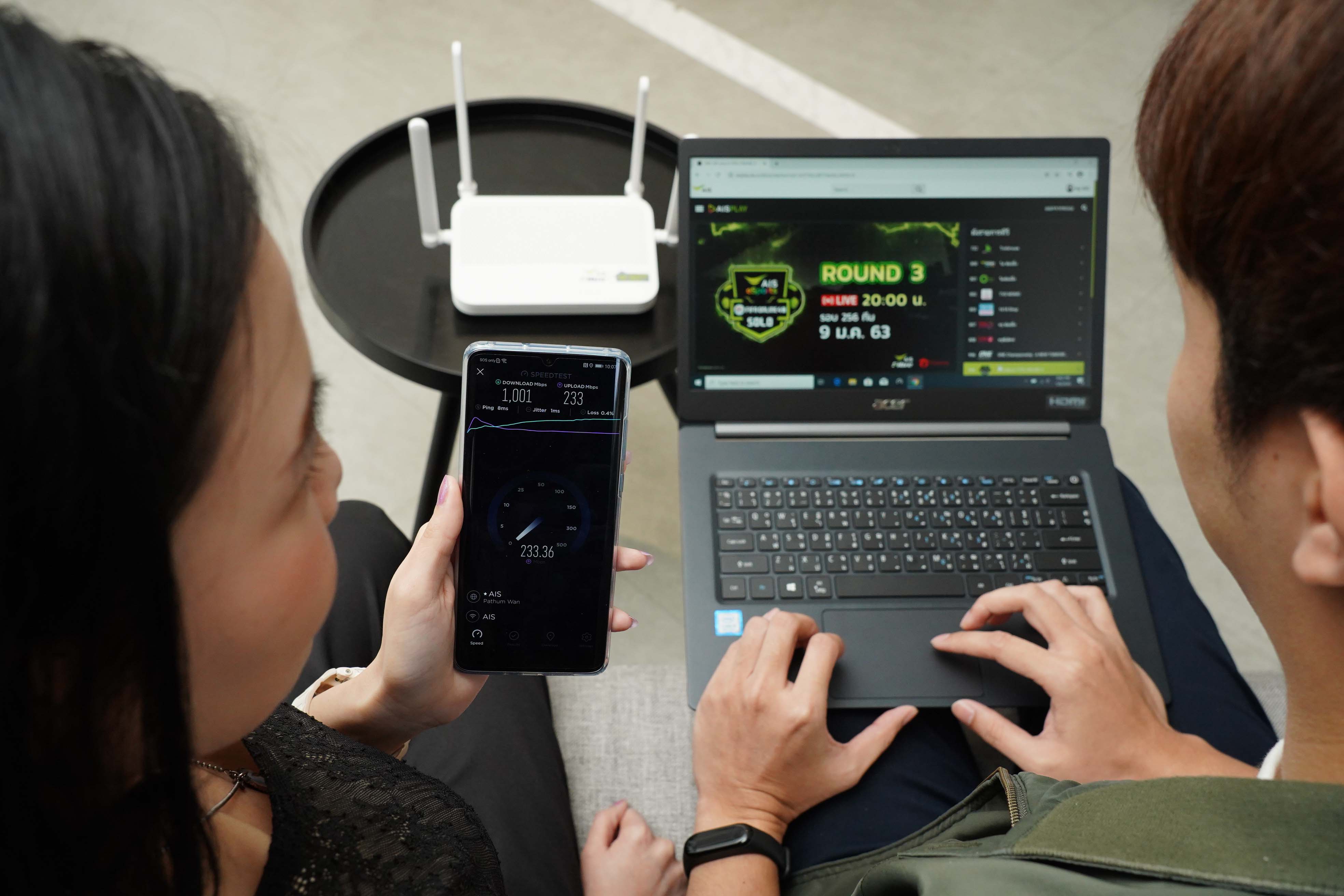 เน็ตแรงเต็มสปีดถึง 1 Gbps บน WiFi เป็นรายแรกในตลาดที่ทำได้จริง พร้อมเชื่อมต่อเป็น Mesh WiFi ช่วยกระจายสัญญาณให้เร็วแรง ครอบคลุมสม่ำเสมอทั่วบ้าน โดยไม่ต้องเดินสาย LAN และสามารถเชื่อมต่อกันได้มากที่สุดถึง 8 ตัว หมดปัญหาจุดอับสัญญาณ ทั้งยังมี “Speed Toggle” ให้ลูกค้าสามารถปรับความเร็วดาวน์โหลด/อัปโหลดได้ด้วยตัวเอง พร้อมมอบบริการที่ “ดีกว่า” และ “ง่ายกว่า” ด้วยการส่ง AIS Fibre GURU ทีมช่างเทคนิคผู้เชี่ยวชาญเข้าไปอำนวยความสะดวกในติดตั้งให้กับลูกค้าถึงที่บ้าน เพื่อให้ลูกค้ามั่นใจได้ว่า สัญญาณ WiFi ดีทั้งบ้านตั้งแต่วันแรกที่ติดตั้ง