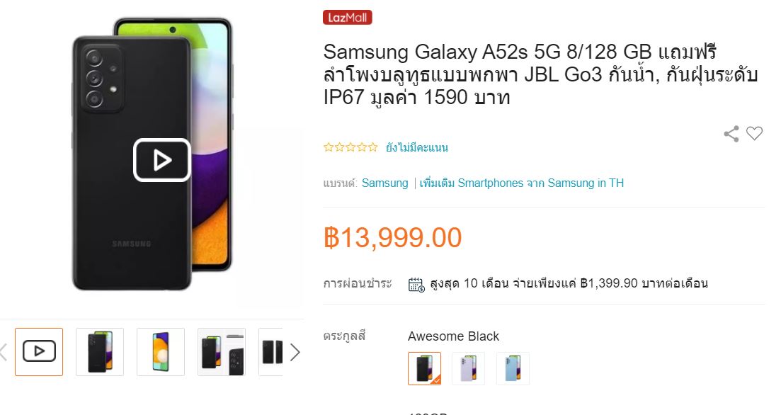 อีกมือถือรุ่นหนึ่งที่เปิดราคาอย่างไม่เป็นทางการในประเทศไทยสำหรับ Samsung Galaxy A52s 5G ซึ่งเป็นรุ่นปรับปรุงใหม่โดยมีสเปกของเครื่องที่ครบเครื่องไม่เบา โดยราคาที่เผยออกมาอยุ่บนโลกออนไลน์คือ 13,990 บาท