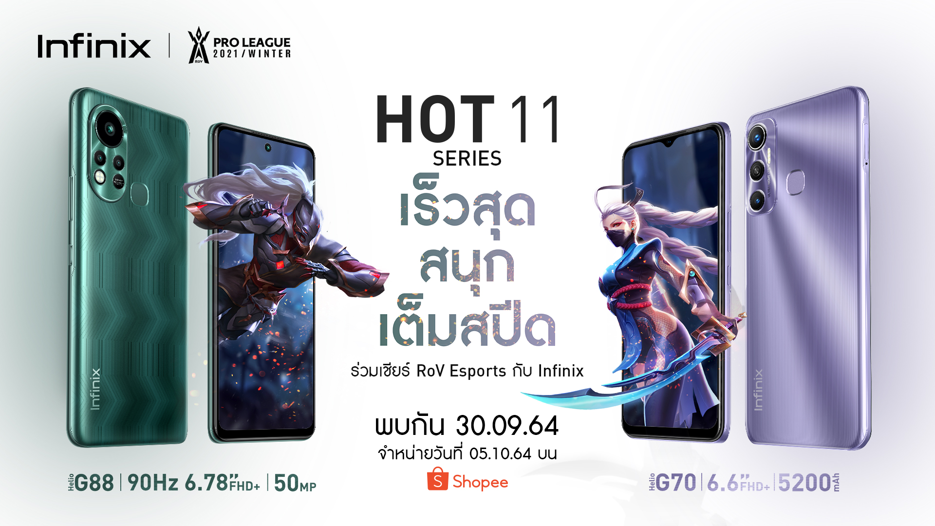 เตรียมพบกับ Infinix HOT 11 Series พร้อมเปิดตัวในประเทศไทยวันที่ 30 กันยายน 2564 ด้วยราคาสุดคุ้มไม่เกิน 5,000 บาท วางจำหน่ายแบบเอ็กซ์คลูซีฟบน Shopee เริ่มตั้งแต่วันที่ 5 ตุลาคม 2564