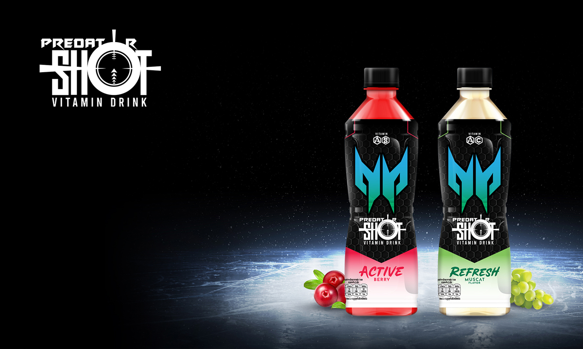 พรีเดเตอร์ช็อต แอคทีฟ กลิ่นเบอรี่ (PredatorShot Vitamin Drink Active Berry) รสหวานอมเปรี้ยว หอมกลิ่นเบอรี่ มีส่วนผสมของวิตามินเอ วิตามินบีรวม สดชื่นด้วยคาเฟอีนธรรมชาติจากชาเขียว พรีเดเตอร์ช็อต รีเฟรช กลิ่นองุ่นมัสแคท (PredatorShot Vitamin Drink Refresh Muscat) รสเปรี้ยวหวาน หอมชื่นใจ อุดมด้วยส่วนผสมวิตามินเอ วิตามินซี และแอลทีอะนีน จำหน่ายในขวดปริมาณ 420 มิลลิลิตร ราคาขวดละ 20 บาท