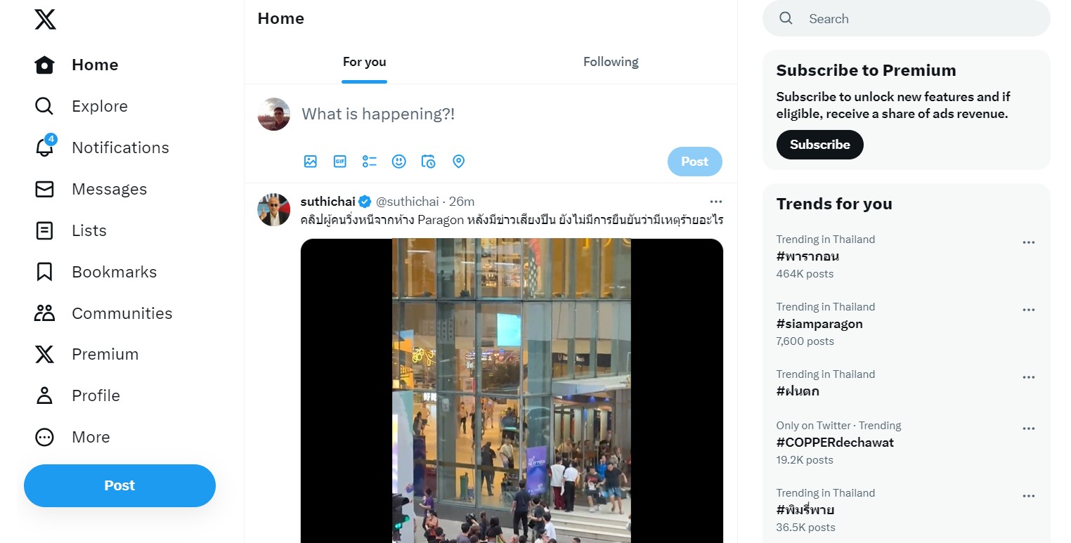 #พารากอน ขึ้นอันดับ 1 ของเทรนด์บนทวิตเตอร์ หลังเหตุยิงกันสนั่นห้างด้วยเหตุการณ์กราดยิงที่สยามพารากอนในช่วง 16:25 น. ที่ผ่ามาทำให้เกิดเหตุการณ์ที่หลายคนกังวลว่าตอนนี้จะสงบกันหรือยัง ล่าสุด X หรือ Twitter