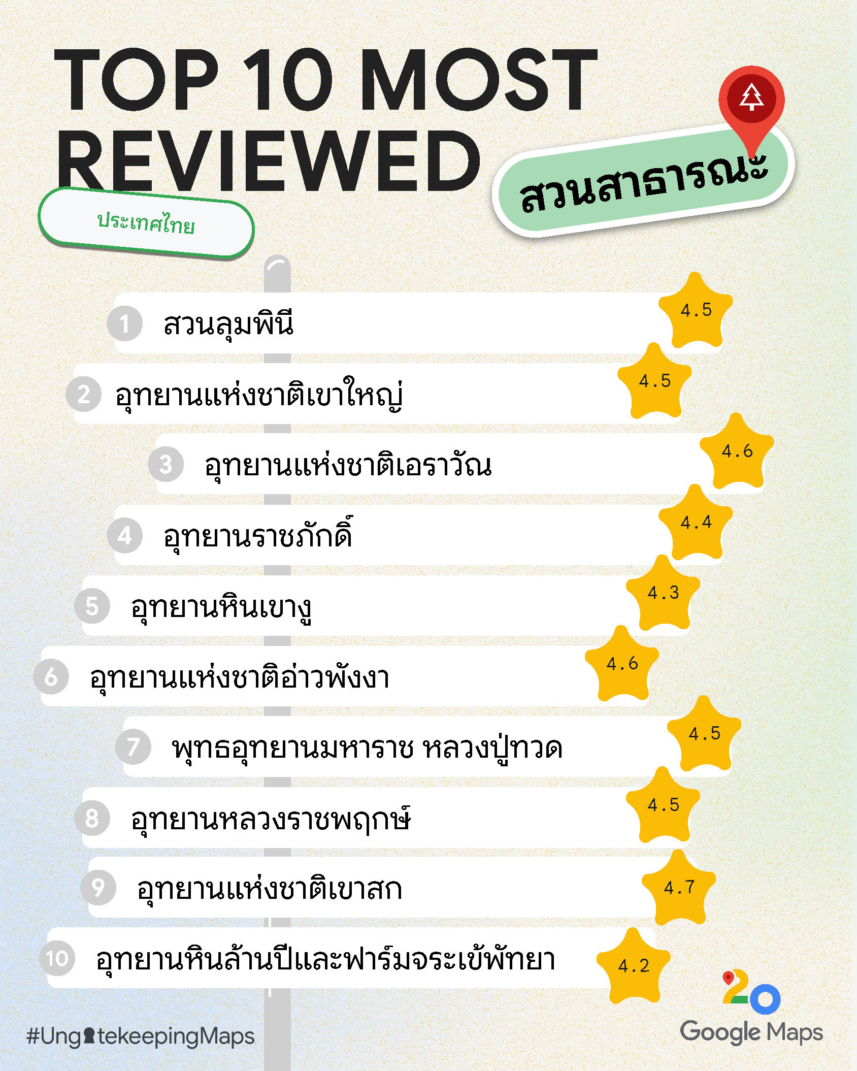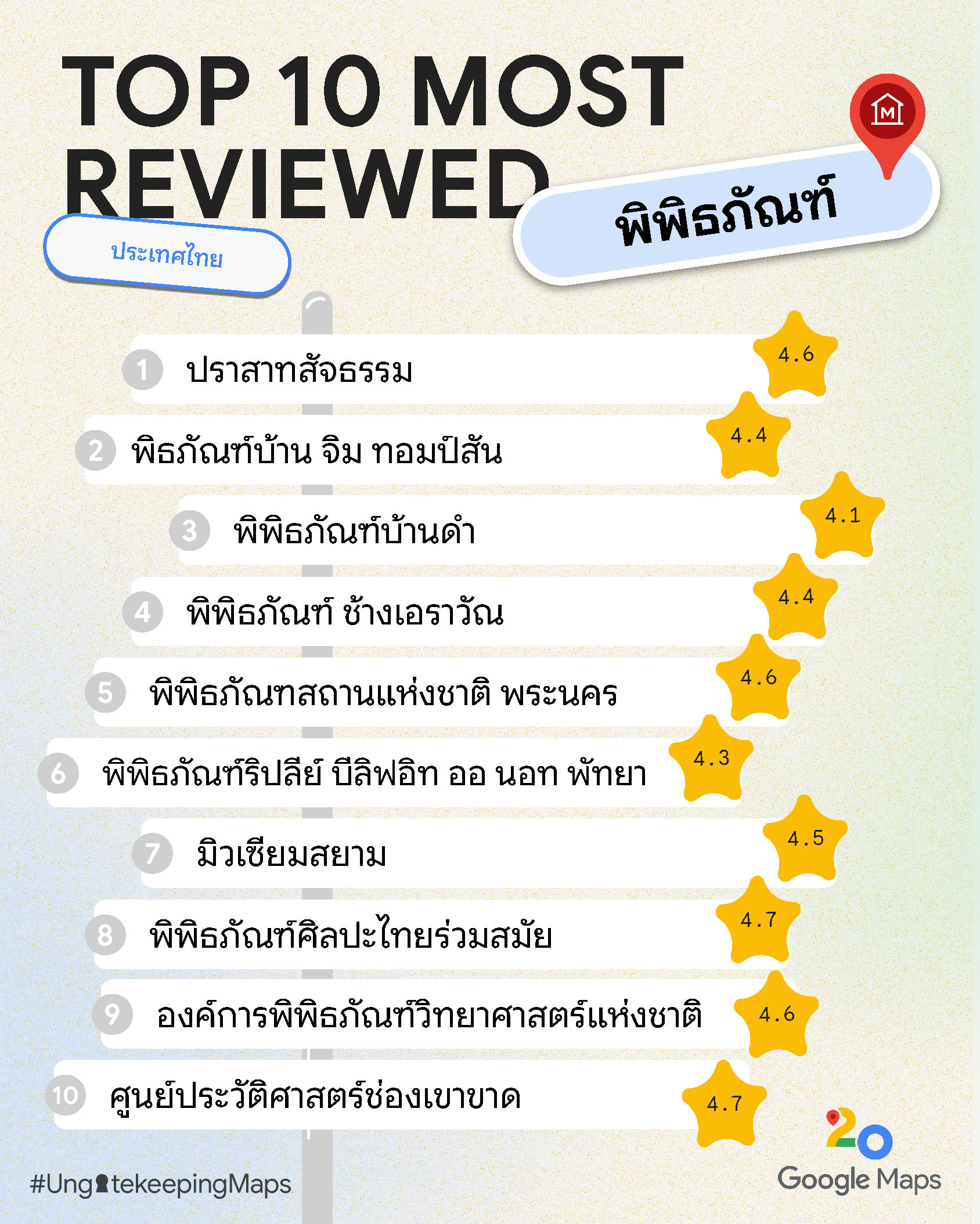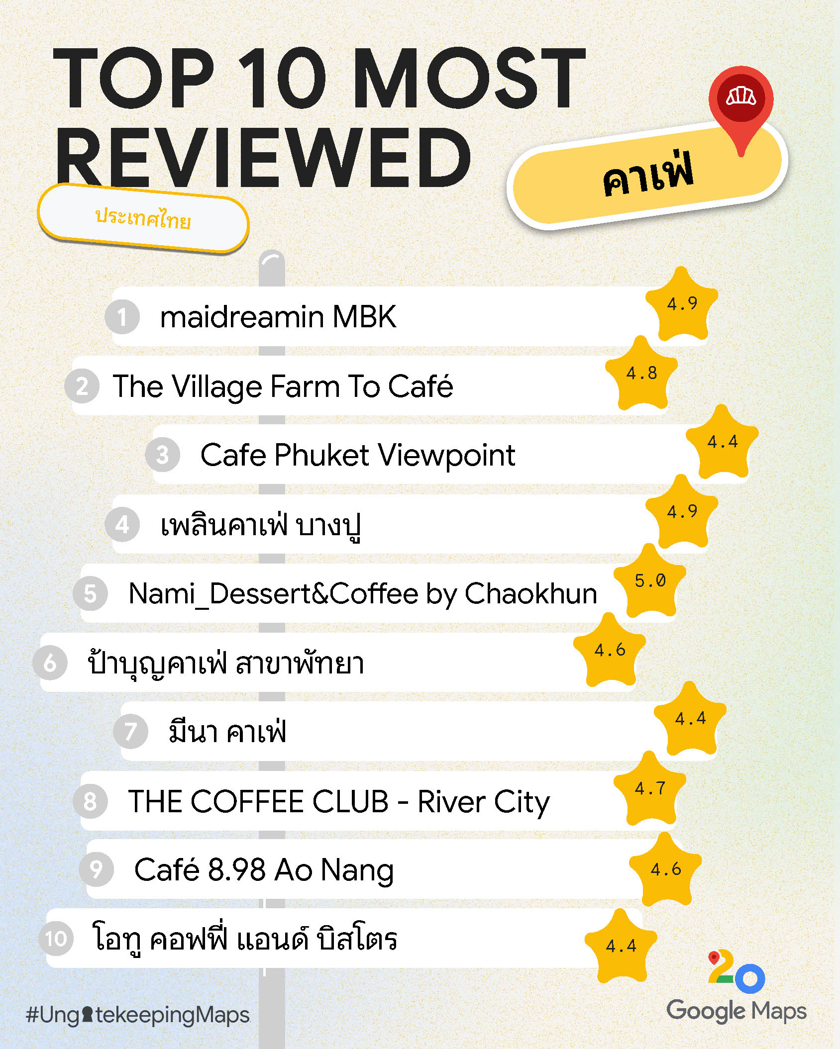 10 อันดับสถานที่ที่ได้รับการรีวิวมากที่สุดบน Google Maps ประเทศไทย