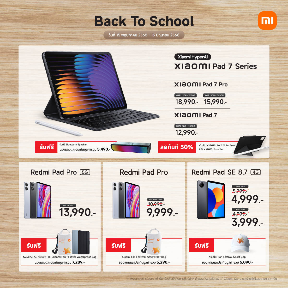 Xiaomi ประเทศไทย จัดโปรโมชัน "Back to School" ลดราคาอุปกรณ์หลายอย่างเสียวหมี่ ประเทศไทย ประกาศจัดแคมเปญโปรโมชันพิเศษ "Back to School" มอบส่วนลดและของสมนาคุณสำหรับผลิตภัณฑ์ในกลุ่มสมาร์ทโฟน แท็บเล็ต และอุปกรณ์ AIoT ต่างๆ
