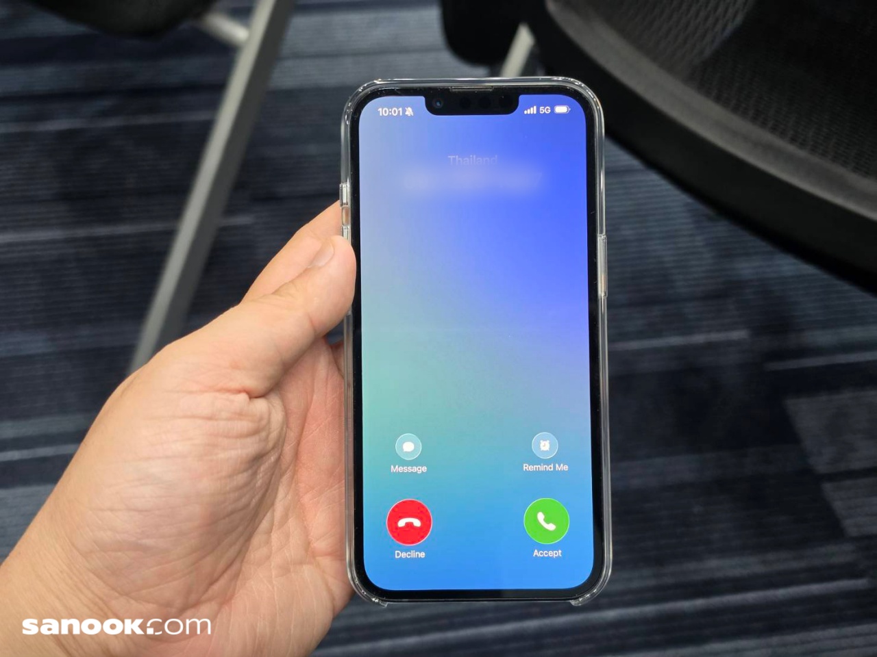 หากผู้ใช้กำลังใช้งานโทรศัพท์อยู่ เช่น เล่นแอปหรือใช้งานหน้าจอ เมื่อมีสายเข้า iPhone จะแสดงเป็น ปุ่ม Accept และ Decline