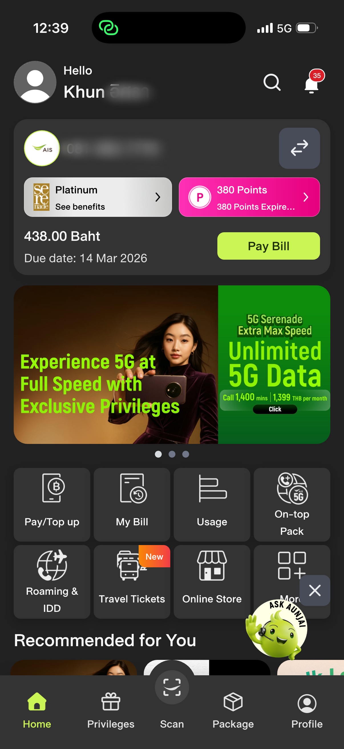 - เปิดแอป myAIS และล็อกอินเข้าสู่ระบบ