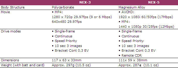 สำหรับคนที่กำลังจะตัดสินใจเลือก Sony อาจต้องเลือกระหว่าง NEX-5 และ NEX-3 ซึ่งทั้งสองรุ่นให้ไฟล์ภาพในระดับเดียวกัน การตัดสินใจเลือกคงต้องดูราคาและคุณสมบัติปลีกย่อยที่แตกต่างกัน ซึ่งได้สรุปให้ไว้ในตารางนี้