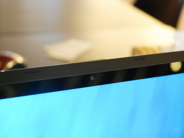 ด้านซ้ายบนเหนือคีย์บอร์ด มีปุ่มสำหรับเปิดปิดเครื่อง (ต้องกดค้าง) ข้างๆ กันเป็นบานพับที่น่าจะทำมาจากคาร์บอนไฟเบอร์ ค่อนข้างแข็ง สามารถยกถือเดินไปมาโดยที่จอไม่ขยับได้สบายๆ
