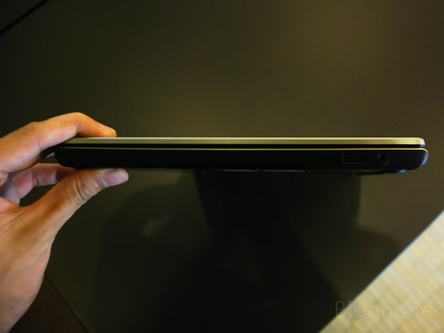 ด้านขวาของตัวเครื่องจะโหลงเหลงเสียหน่อย เพราะมีเพียงพอร์ต 3.5 มม. (รวมทั้งไมโครโฟน/ลำโพงในช่องเดียว) และพอร์ต USB 3.0 อีกพอร์ต