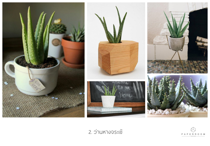 2. ว่านหางจระเข้ : นอกจากสรรพคุณด้านการรักษาแผลแล้ว ว่านหางจระเข้ยังช่วยดูดสารเคมีต่างๆ ทำให้อากาศบริสุทธิ์ อีกทั้งยังปลูกง่ายและไม่ต้องดูแลมากด้วย